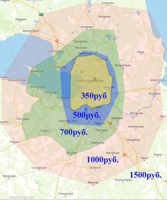 Карта стоимости доставки